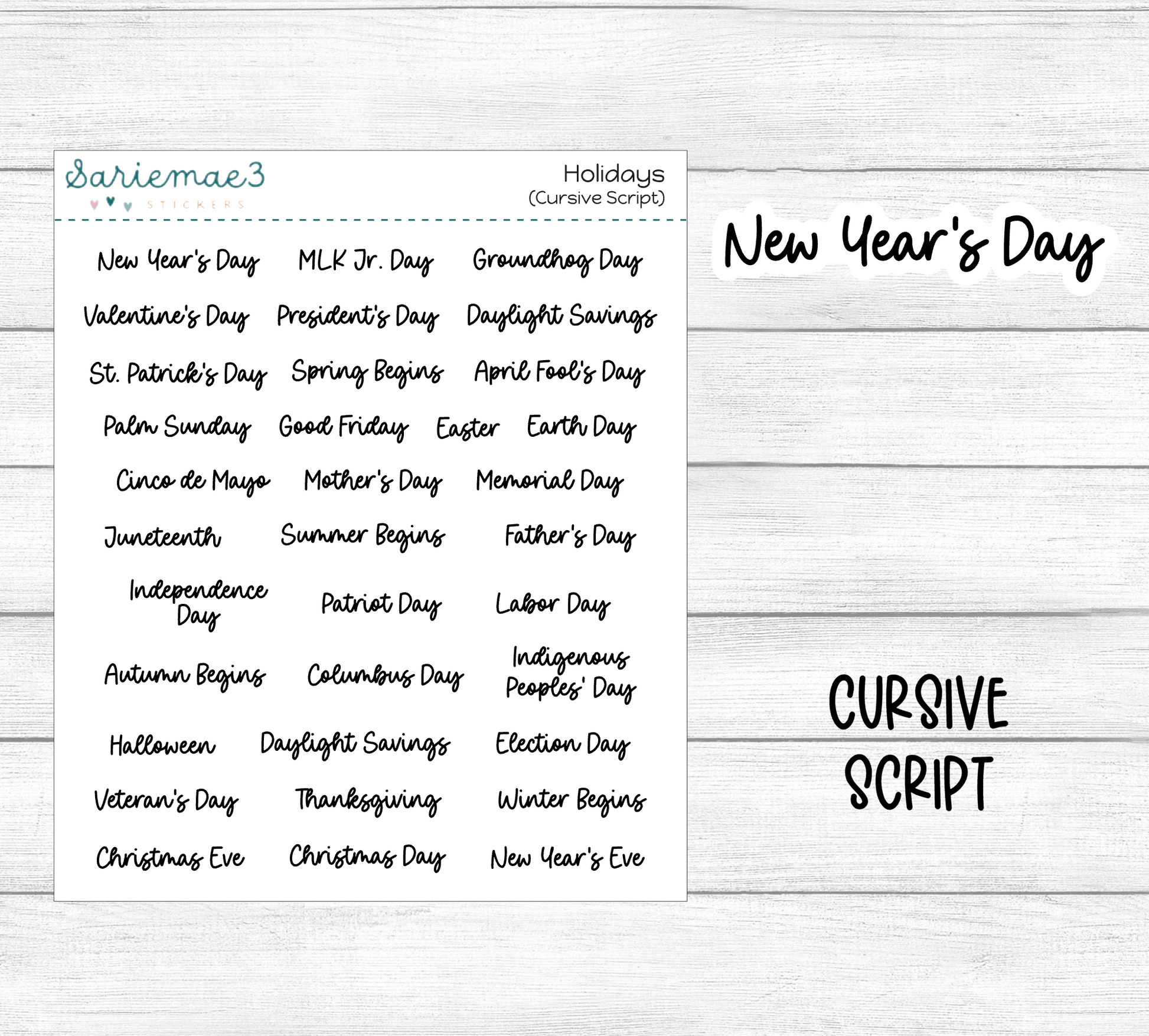 Holidays (Cursive)